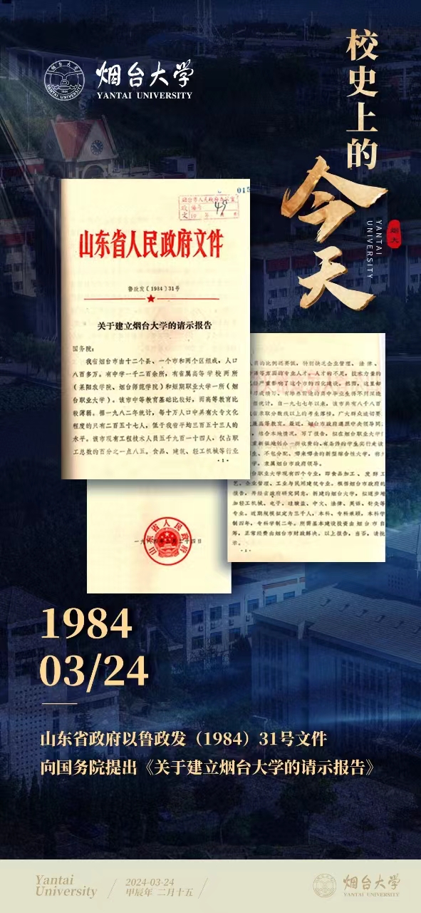 校史上的今天 | 1984年3月24日,省政府向國(guó)務(wù)院提請(qǐng)建立煙臺(tái)大學(xué)