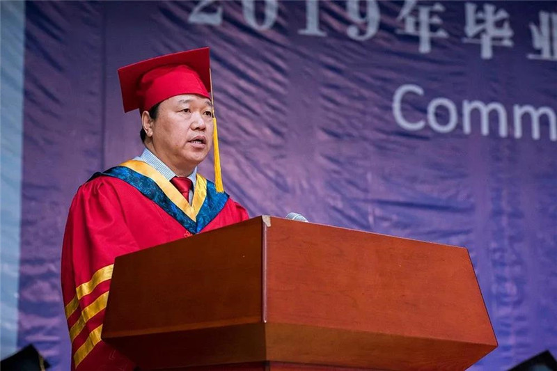 郭善利校長在2019屆畢業(yè)生學(xué)位授予儀式上的照片
