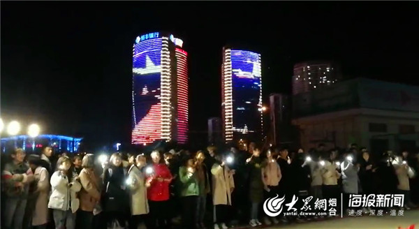 煙大學子熄燈下樓參加“熄燈晚會”