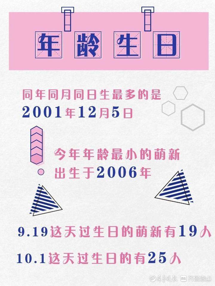 在2020級萌新中年齡最小的萌新出生于2006年,她來自于生命科學學院。除此之外在報到當天過生日的同學有19人,國慶節當天有25人。