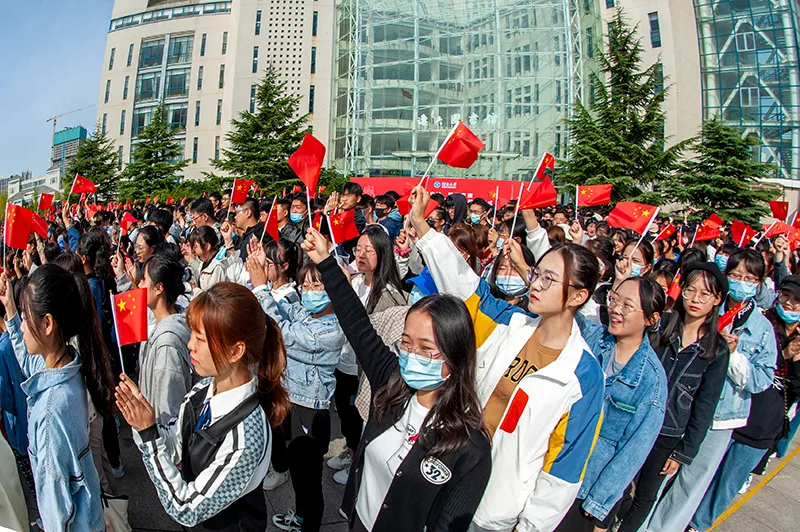 升旗儀式上,2020級新生林玉青同學以《青春奮進 筑夢家國》為題進行了國旗下的演講,一字一句傳遞著用青春奮斗書寫使命擔當的信心和力量。歌曲《中國力量》致敬家國情懷,謳歌深沉昂揚的中國力量。“一場驚心動魄的抗疫大戰,一場艱苦卓絕的歷史大考,創造了人類同疾病斗爭史上又一個英勇壯舉?!憋h揚的國旗下,師生代表配樂詩朗誦《這是二〇二〇年的中國》,飽含深情地回顧了以習近平同志為核心的黨中央團結帶領全國人民進行偉大抗疫斗爭的非凡歷程,禮贊奮戰在各條戰線的抗疫英雄?!耙粭l大河波浪寬,風吹稻花香兩岸……”活動尾聲,當這動聽而熟悉的旋律響起時,在場全體師生自發揮舞著手中的國旗,共同深情唱響《我的祖國》,用歌聲抒發著對偉大祖國最深沉和自豪的熱愛。