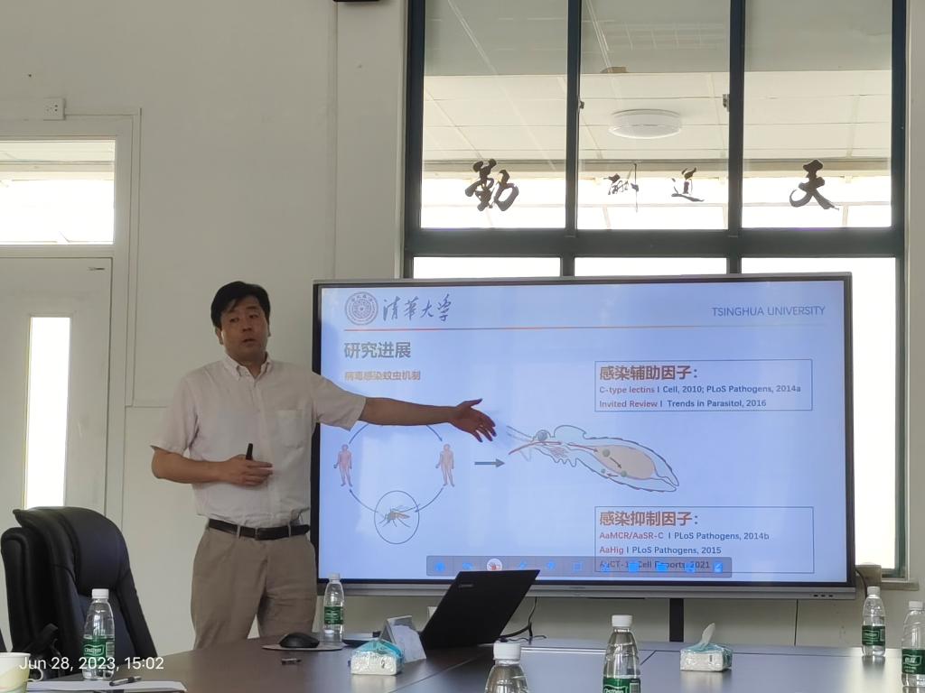 6月28日,清華大學(xué)醫(yī)學(xué)院副院長兼黨委副書記程功教授應(yīng)邀到我院進(jìn)行交流訪問,為藥學(xué)院師生作了題為《蚊媒病毒感染與傳播》的學(xué)術(shù)講座。藥學(xué)院院長王洪波主持,有關(guān)科研人員及研究生參與了本次報告會。