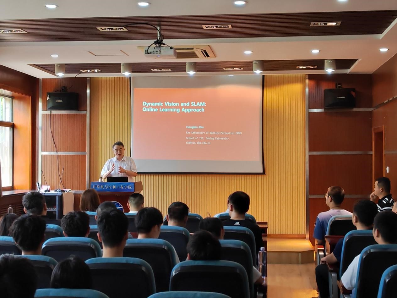 7月5日,北京大學(xué)智能學(xué)院查紅杉教授應(yīng)邀到煙臺大學(xué)開展交流訪問,為計算機(jī)與控制工程學(xué)院師生作了題為“動態(tài)視覺與SLAM:在線學(xué)習(xí)的途徑”的學(xué)術(shù)報告。計算機(jī)與控制工程學(xué)院副院長王瑩潔主持報告會。