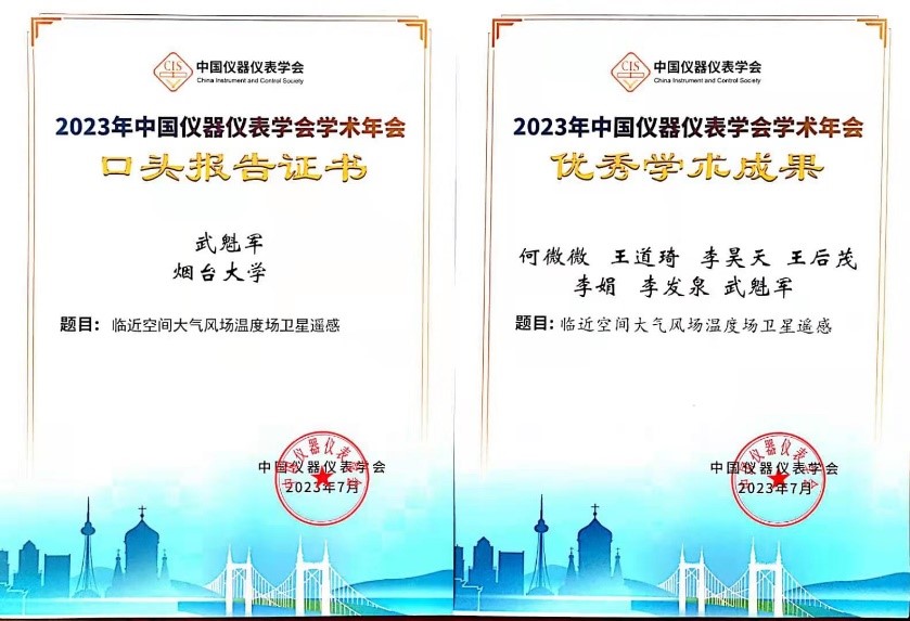2023年中國(guó)儀器儀表學(xué)會(huì)學(xué)術(shù)年會(huì)于7月14日至16日在黑龍江省哈爾濱市隆重召開(kāi),煙臺(tái)大學(xué)光電智能遙測(cè)感知團(tuán)隊(duì)榮獲中國(guó)儀器儀表學(xué)會(huì)優(yōu)秀學(xué)術(shù)成果獎(jiǎng)。