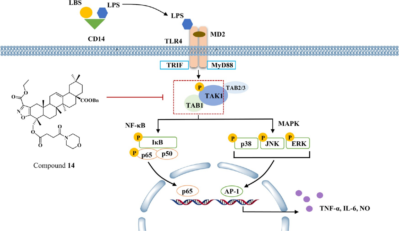 化合物14抑制NF-κB和MAPK信號轉導的機制