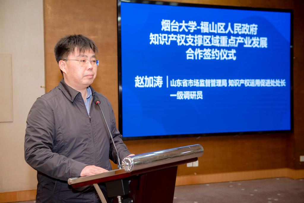 【本站訊】4月2日,煙臺大學(xué)與福山區(qū)人民政府共同啟動“專利定向轉(zhuǎn)化支撐重點(diǎn)產(chǎn)業(yè)發(fā)展”活動,共同打造校地知識產(chǎn)權(quán)面向產(chǎn)業(yè)鏈定向轉(zhuǎn)化運(yùn)用新模式。山東省市場監(jiān)管局知識產(chǎn)權(quán)運(yùn)用促進(jìn)處處長趙加濤、三級調(diào)研員顧雪峰;煙臺市市場監(jiān)管局局長譚克良、黨組成員高冬,福山區(qū)區(qū)長楊東霖、副區(qū)長張湲蘋,煙臺市知識產(chǎn)權(quán)保護(hù)中心主任張竹青;煙臺大學(xué)黨委副書記、校長郝曙光,黨委常委、副校長王麗出席,福山區(qū)相關(guān)單位分管負(fù)責(zé)人,駐煙高校和科研院所、企業(yè)、服務(wù)機(jī)構(gòu)代表、新聞媒體代表等參加活動。活動由張湲蘋主持。