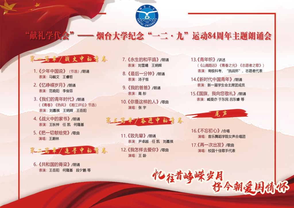 “獻(xiàn)禮學(xué)代會”紀(jì)念“一二?九”運(yùn)動84周年朗誦會