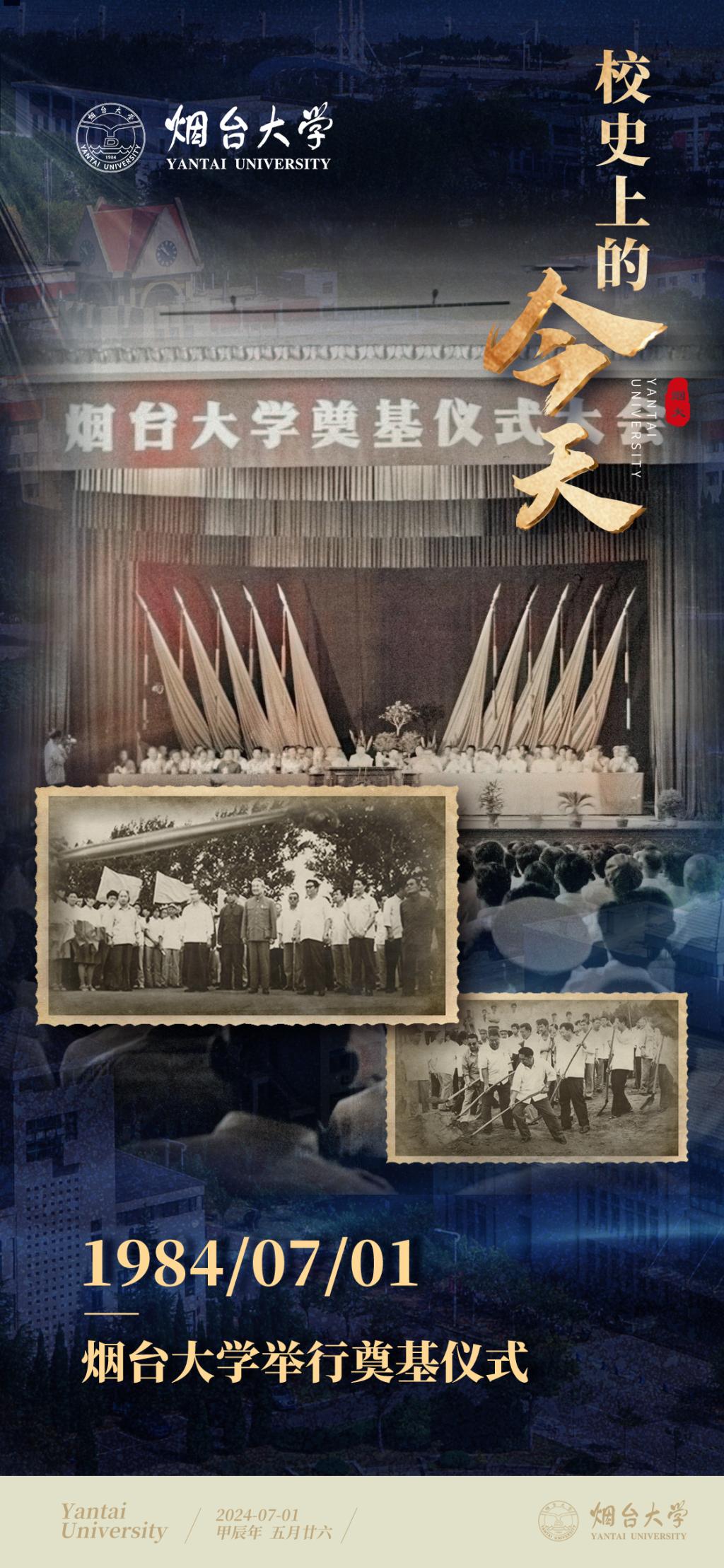 【編者按】2024年是新中國成立75周年,也是煙臺大學建校40周年。40年來,誕生于改革開放時代大潮中的煙臺大學,植根齊魯文化沃土,傳承北大清華基因,弘揚改革開放精神,勇擔教育強國使命,書寫了一段段滋蘭樹蕙的育人故事,譜寫了一曲曲乘風破浪的奮進贊歌。為慶祝煙臺大學建校四十周年,新聞中心(融媒體中心)推出“校史上的今天”欄目,以時間為線索,擷取煙大建校發展史上具有代表意義的重大事件,重溫閃耀在歷史長河中的昔年今朝,追憶在鹽堿灘上白手起家、艱苦創業的崢嶸歲月,展現辦學歷程中取得的新發展成就,啟迪新時代煙大人在新征程中再創新輝煌。