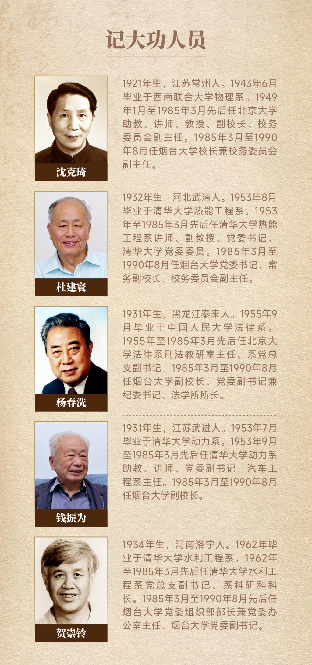 煙臺大學取得的成績,傾注了北京大學、清華大學廣大干部、教師的心血。煙臺大學校長沈克琦、黨委書記杜建寰等37名干部、教師服從組織安排,離京赴煙,克服種種困難,堅持在管理、教學、科研等崗位上兢兢業業忘我工作。他們艱苦創業,銳意進取,嚴于律己,廉潔奉公,為學校積累了豐富的辦學經驗,培育了良好的校風學風,贏得了廣大教職工的高度贊揚。
