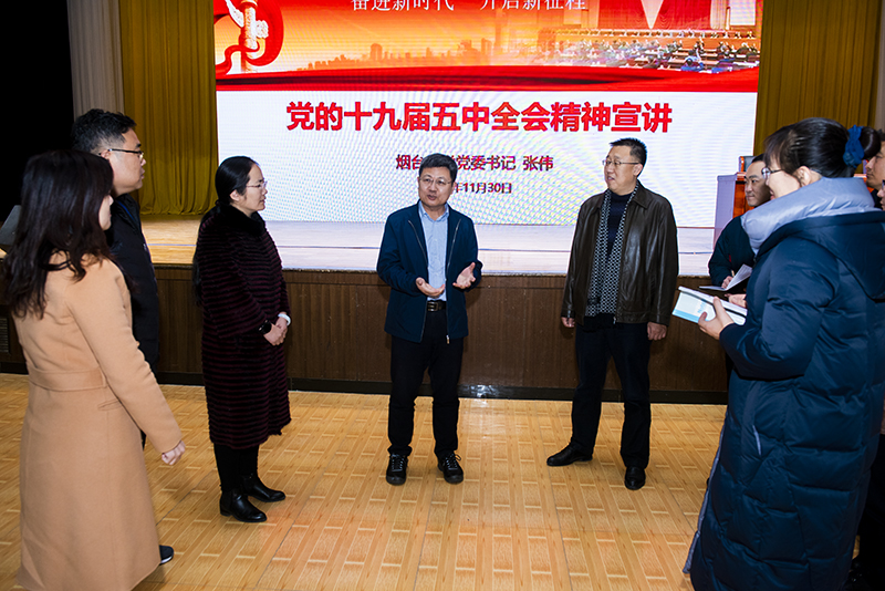 11月30日下午,煙臺大學學習貫徹黨的十九屆五中全會精神首場宣講會舉行,省屬高校學習貫徹黨的十九屆五中全會精神宣講團成員、校黨委書記張偉面向黨委理論中心組成員、全校副科級及以上干部和師生代表進行宣講。黨委常委、黨委宣傳部部長于秀國主持。