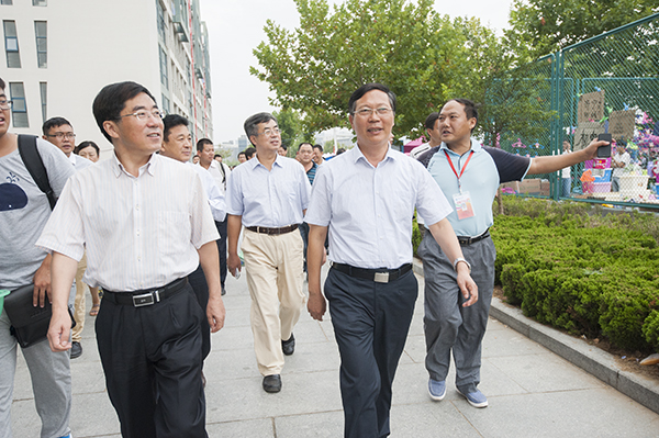 9月7日上午,煙臺大學黨委書記崔明德,校長房紹坤,副校長孫祥斌、鄧昌亮在學校相關職能部門負責人的陪同下來到南校區迎新現場看望2014級同學,并出席了佳隆集團愛心捐贈儀式。