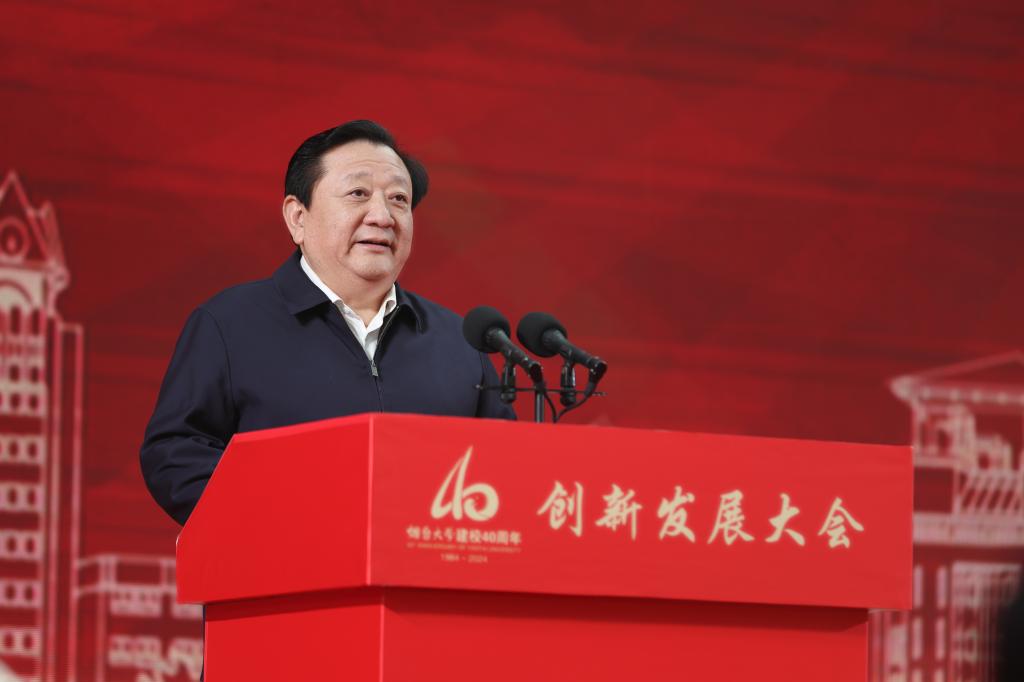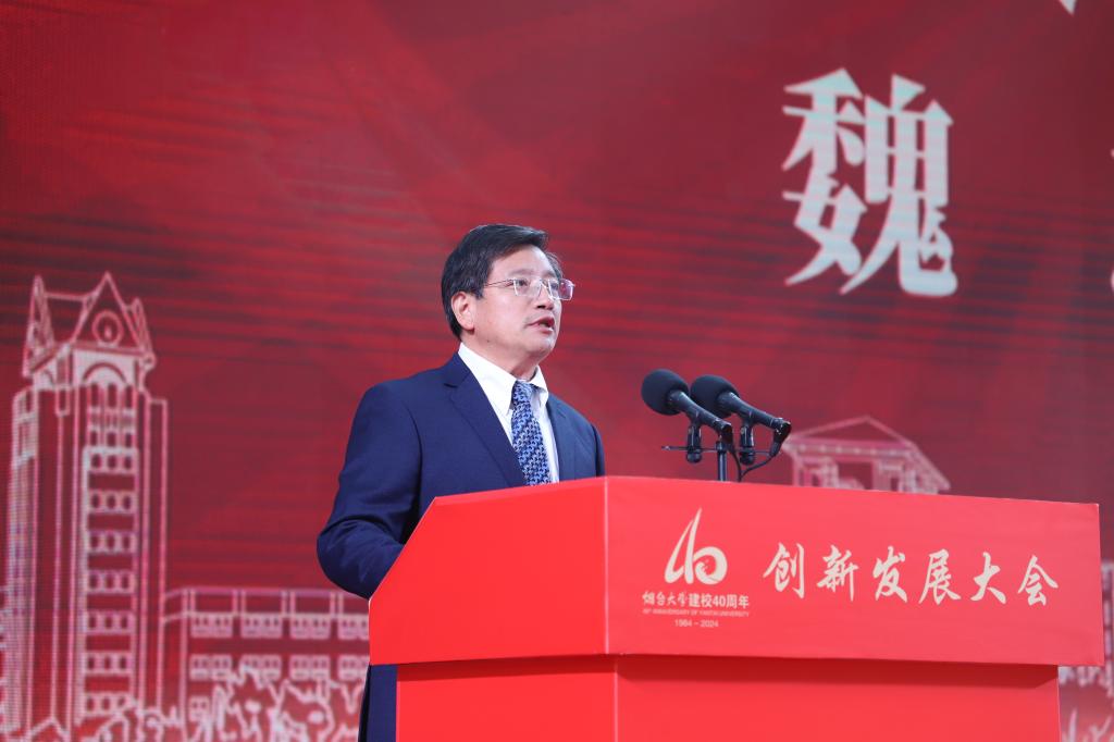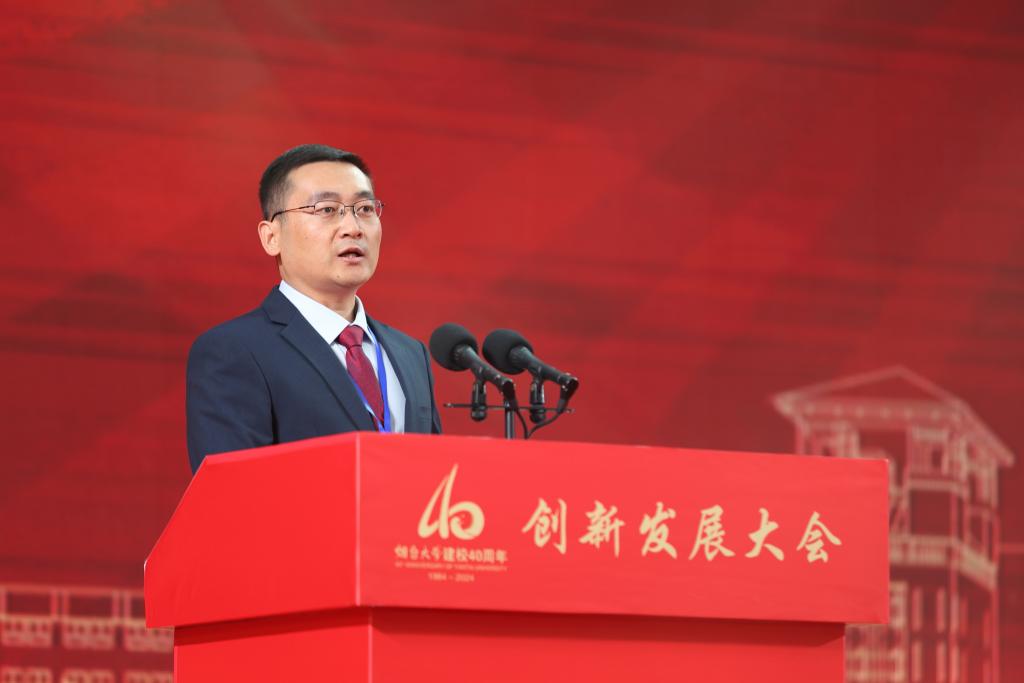 煙臺大學黨委副書記、校長郝曙光作題為“勇擔時代使命 續寫四秩華章”的發展報告