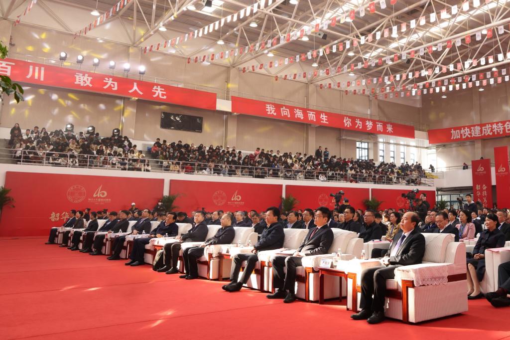 會上,煙臺大學黨委副書記、校長郝曙光作了題為“勇擔時代使命 續寫四秩華章”的發展報告。郝曙光表示,煙臺大學的誕生得益于改革開放的偉大時代,煙臺大學的成長得益于煙臺人民的深情厚愛,煙臺大學的進步得益于北大清華的長期支援,煙臺大學的發展得益于歷代煙大人的接續奮斗。40年來,煙臺大學始終堅持學科引領、突出特色、打造優勢,始終堅持人才驅動、激發活力、引領發展,始終堅持立德樹人、培根鑄魂、涵育英才,始終堅持科研賦能、立足前沿、創新發展,始終立足地方、服務社會、融合發展,始終堅持文化浸潤、厚植底蘊、涵養精神,始終堅持樹立全球視野、開放包容、互聯互通,始終堅持守正創新、開拓進取、奮發有為。郝曙光強調,黨對學校工作的全面領導,是辦好中國特色社會主義大學的根本保證;在兩校援建精神感召下形成的“海納百川,敢為人先”精神,是指引建成高水平大學的精神法寶與不竭動力;學術是大學賴以生存的基礎、學生是大學的主體、學者是大學的靈魂,學生、學者與學術的良性互動是學校事業高質量發展的關鍵所在;統籌學科建設、人才培養、科學研究,在與區域經濟社會發展的互動中實現校城深度融合,是提升核心競爭力、實現又好又快發展的有效途徑。站在高水平大學建設的新起點上,煙臺大學將以更主動的擔當為黨育人、為國育才,強化中國式現代化的人才支撐,以更積極的作為服務發展、服務大局,助力實現高水平科技自立自強,以更有力的舉措深化改革、推動創新,加快推進教育現代化建設進程。
