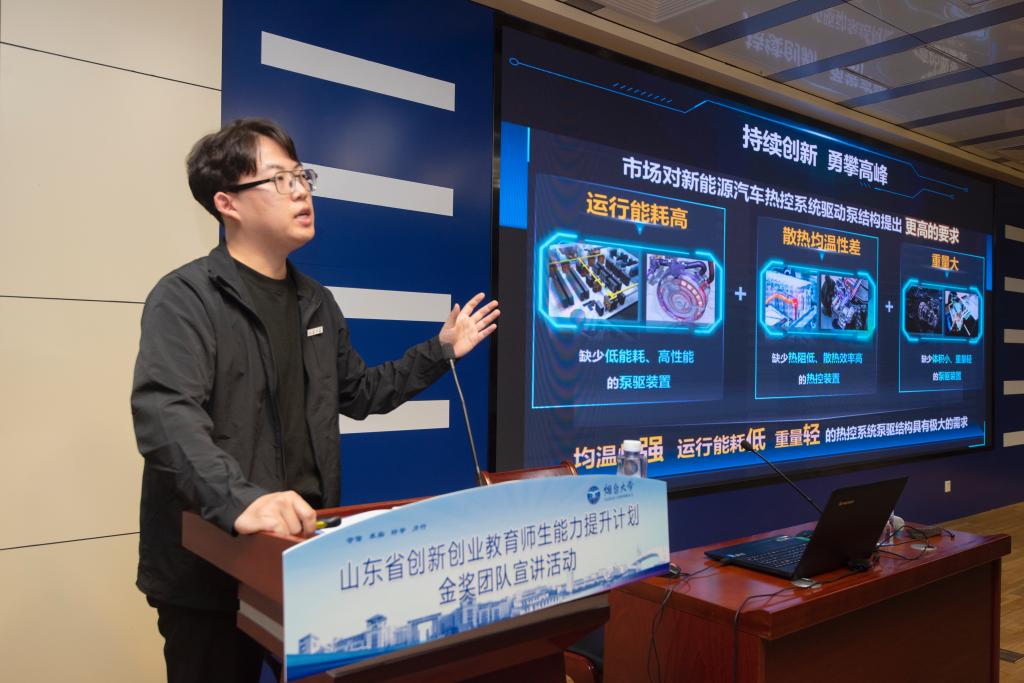 在金獎項目宣講環節,來自山東大學的《揭矸而砌——礦區井下治理的“精衛鳥”》金獎團隊和來自山東大學(威海校區)的《馳冷溫控——面向新能源汽車的環路熱管熱控方案先鋒者》金獎團隊圍繞備賽歷程、參賽經驗、成長感悟等方面進行了分享交流。活動現場還開展了創新大賽項目“一對一”互動交流,我校和來自山東大學的師生圍繞項目孵化、技術轉化、跨學科協作等展開深度交流。