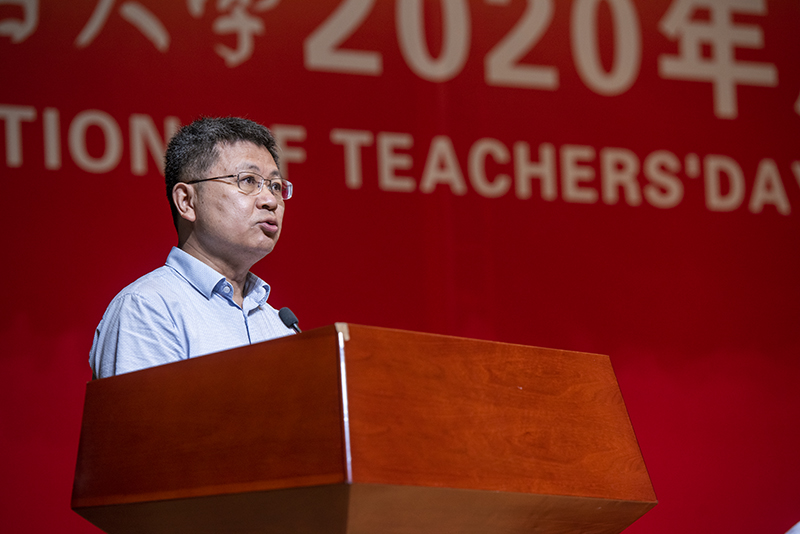 黨委書記張偉代表學校黨委、行政向辛勤耕耘在教學科研一線的老師們致以崇高的敬意,向堅守在管理服務崗位的教職工致以誠摯的問候,向新加入煙臺大學大家庭的教職員工表示熱烈的歡迎,向受表彰的優秀教師、優秀教育工作者們表示衷心的祝賀。張偉指出,我們黨和國家歷來高度重視教育和教師工作,習近平總書記向全國廣大教師和教育工作者致以節日祝賀和誠摯慰問時強調,廣大教師要不忘立德樹人初心,牢記為黨育人、為國育才使命,積極探索新時代教育教學方法,不斷提升教書育人本領,為培養德智體美勞全面發展的社會主義建設者和接班人作出新的更大貢獻。近兩年,煙臺大學不斷加強教師隊伍建設,有效推動了學校高質量發展,提升了學校綜合競爭實力與核心競爭力。