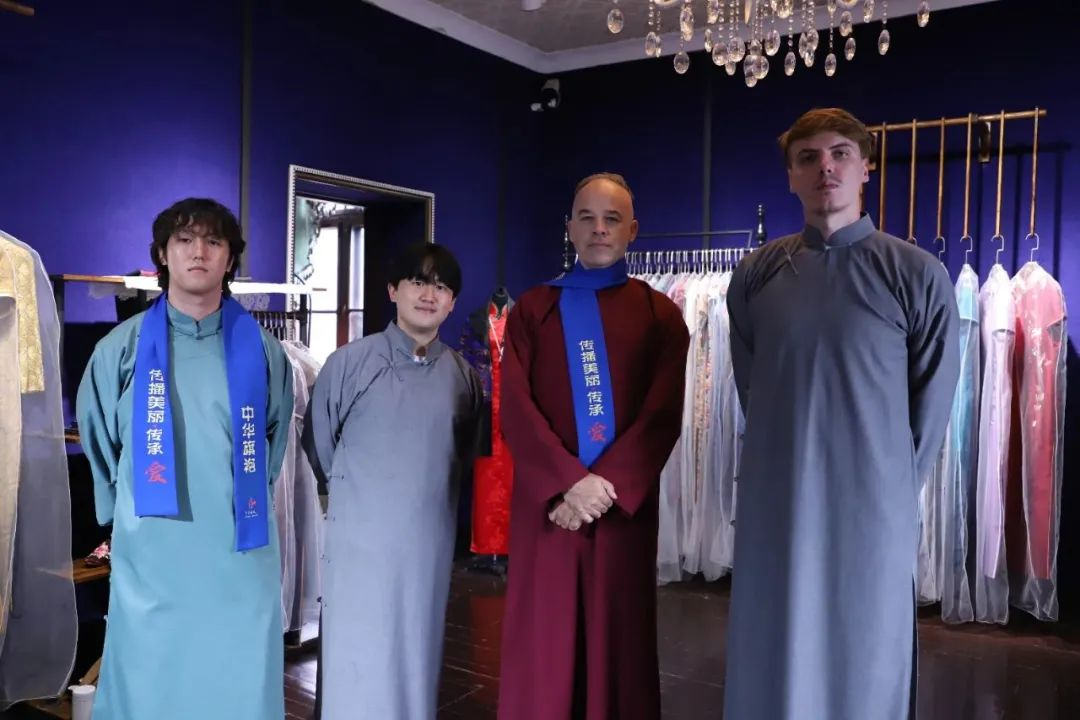 在博物館中,講解員帶領(lǐng)留學(xué)生們了解旗袍的歷史,并向大家展示部分旗袍及其披肩的穿法,一件件設(shè)計(jì)新穎、做工精美的旗袍引得大家駐足觀賞。參觀完畢后,留學(xué)生們逐一選擇了自己心儀的旗袍和長(zhǎng)袍馬褂試穿,進(jìn)一步感受中國(guó)傳統(tǒng)服飾的魅力。日本學(xué)生和田佳織說(shuō):“我第一次穿旗袍,感覺(jué)非常新奇和開(kāi)心。”韓國(guó)學(xué)生樸慧連說(shuō):“穿著旗袍的女子身姿曼妙,步履輕盈,這次參觀讓我對(duì)旗袍產(chǎn)生了向往。”