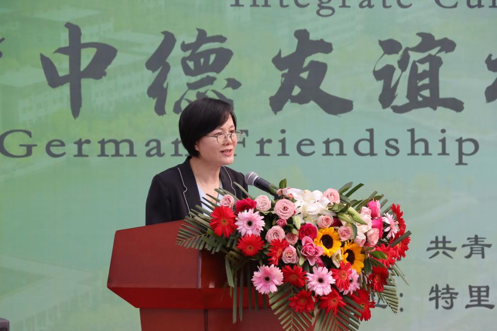 【本站訊】四載耕耘,綠韻流芳。6月5日,學校第四屆“中德友誼橋”文化交流節在育秀廣場舉行。黨委常委、副校長馮素玲,德國特里爾應用技術大學國際項目管理部門負責人Marco Angilella教授出席開幕式并致辭,學生工作處、校團委、國際合作交流處、法學院、環境材料與工程學院、特里爾可持續發展技術學院等單位負責人參加活動。