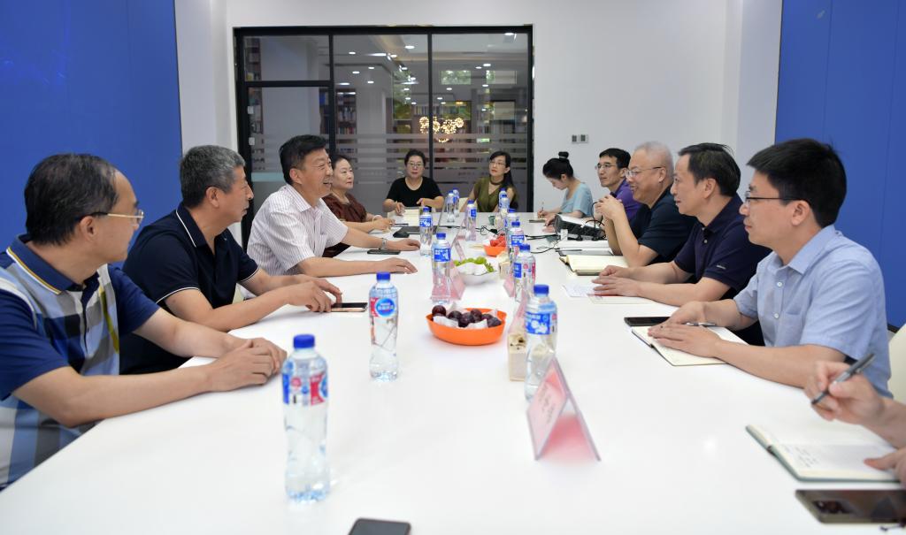 7月8日,南京郵電大學圖書館館長唐加山一行6人到我校圖書館考察學習,探討“閱讀療法”的實踐和應用以及閱讀療愈專區的建設、圖書館的建設發展情況等,圖書館館長任匯江、副館長袁紅玉、于純良等出席座談交流。