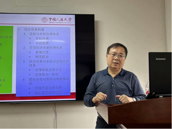 劉瑞教授基于歷史演化的角度,圍繞宏觀經(jīng)濟(jì)治理體系的構(gòu)建與在場師生展開探討。他為大家詳細(xì)解讀了宏觀經(jīng)濟(jì)治理體系的概念,并介紹了現(xiàn)代化的宏觀經(jīng)濟(jì)治理體系,系統(tǒng)梳理了經(jīng)濟(jì)體系的演化。劉瑞教授著重介紹了單獨(dú)體系構(gòu)建與綜合體系構(gòu)建,從歷史演化的角度來幫助大家深刻理解宏觀經(jīng)濟(jì)治理體系構(gòu)建。他鼓勵同學(xué)們要多角度、全方位地發(fā)現(xiàn)問題、解決問題,在學(xué)術(shù)科研的道路上積極探索。